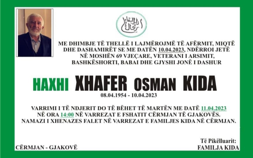 Vdes ish-luftëtari i UÇK-së, Haxhi Xhafer Kida. Ka vdekur...