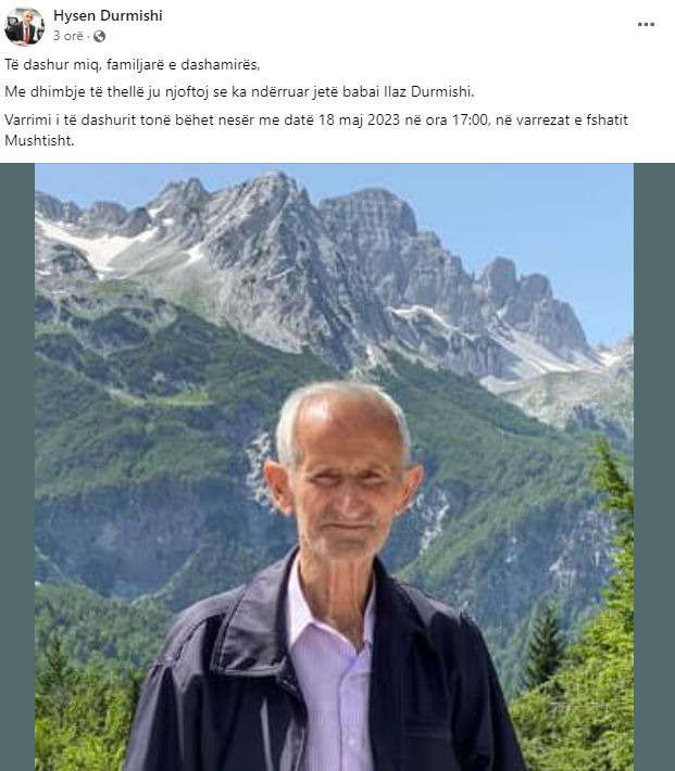 Vdes babai i zëvendësministrit Durmishi. Zëvendësministri i Infrastrukturës, Hysen...