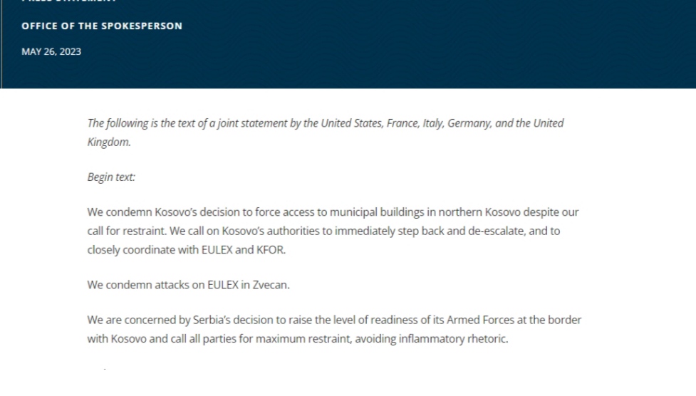 QUINT’i i dënon veprimet e Kosovës në Veri, shprehin...