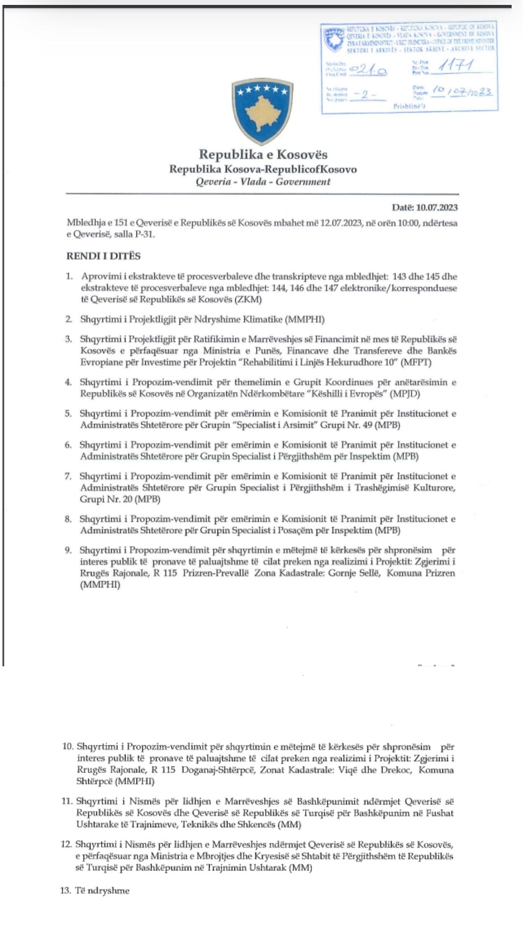Qeveria e Kosovës sot do të mbajë mbledhjen e...