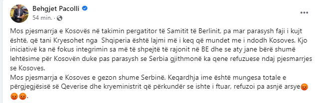 Pacolli bëhet nervoz që Kurti s’shkoi në takim te...
