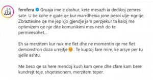 Fero ka habitur të gjithë ndjekësit e tij në rrjetet sociale dhe kjo për faktin se ai i ka kërkuar publikisht falje gruas së tij. Ai gjithashtu i ka kërkuar që ajo të rikthehet tek ai pasi ka ndryshuar rrënjësisht.