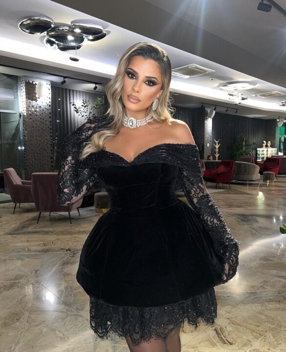 E veshur me fustan të zi dhe të shkurt, Qëndresa paska shkëlqyer në këtë pamje.