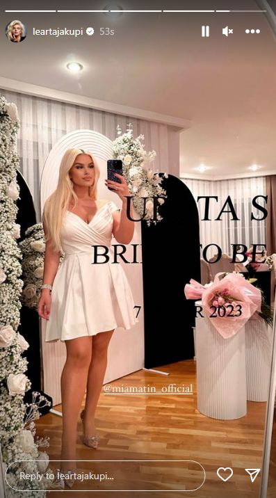 Në fotografinë e fundit ajo shihet e veshur me fustan të bardhë dhe po duket tejet bukur./ORAinfo/