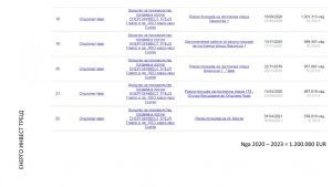 Sipas të dhënave me të cilat disponon portali “Politiko”, tandemi i famshëm i komunës së Çairit, Visar Ganiu dhe Izet Mexhiti kanë lidhur edhe 23 marrëveshje furnizimi në vlerë prej 4.113.165 euro me kompaninë “Baur BG”, si dhe marrëveshje në vlerë prej 11.091.674 euro për sheshin “Skënderbeu”, që në total është 15.204.843 euro.