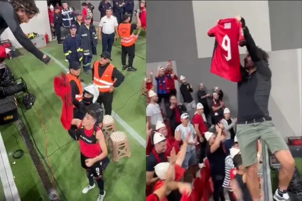 Ylli i Shqipërisë pas ndeshjes mbrëmë ndërroi fanellën me një tifoz, me Ismail Morinën, të njohur ndryshe si “Ballisti”.