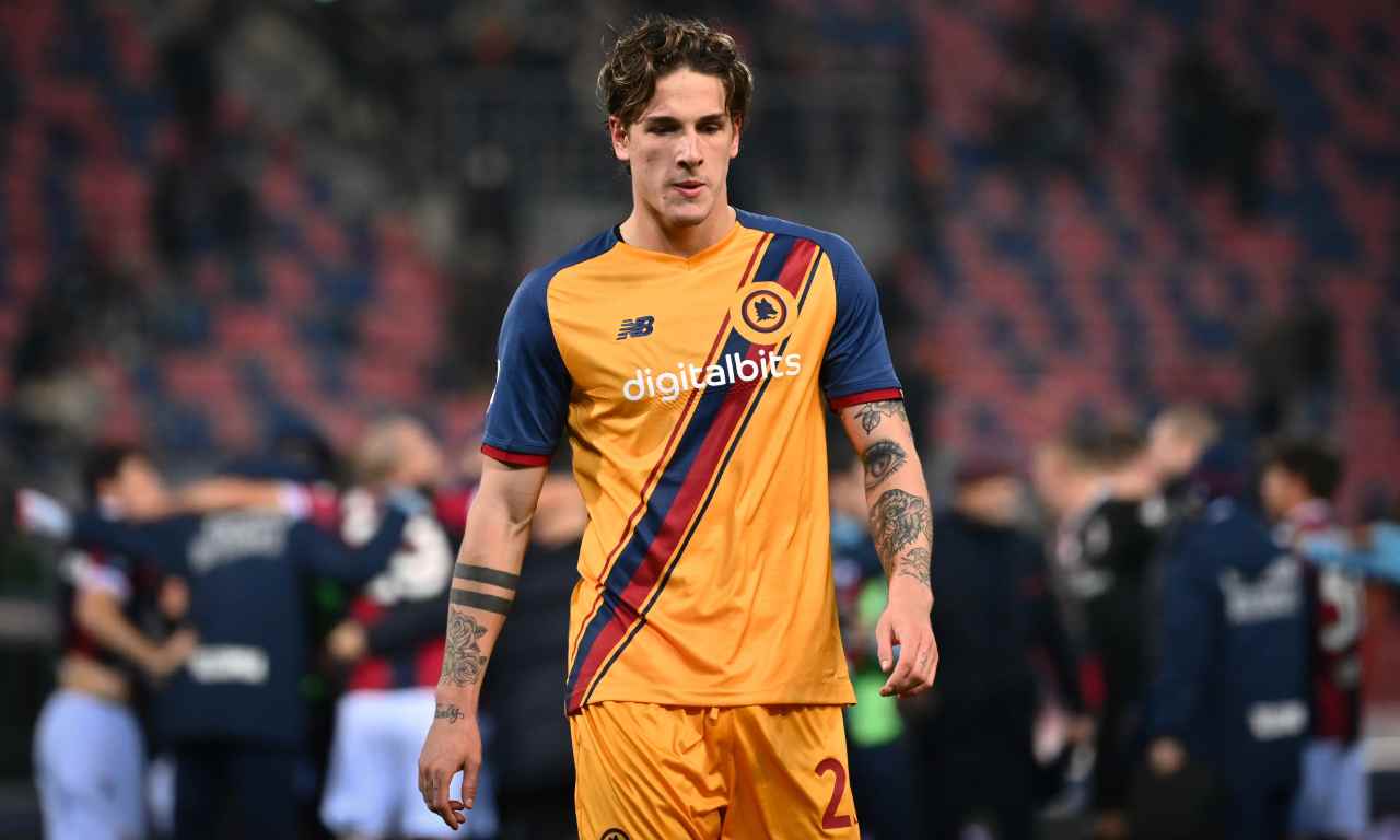 Foto Massimo Paolone/LaPresse 1 dicembre 2021 Bologna, Italia sport calcio Bologna vs Roma - Campionato di calcio Serie A TIM 2021/2022 - stadio Renato Dall'Ara Nella foto: Nicolo Zaniolo (AS Roma) esce dal campo a testa bassa a fine partita Photo Massimo Paolone/LaPresse December 1, 2021 Bologna, Italy sport soccer Bologna vs Roma - Italian Football Championship League A TIM 2021/2022 - Renato Dall'Ara stadium In the pic: Nicolo Zaniolo (AS Roma) leaves the field with head down at the end of the match
