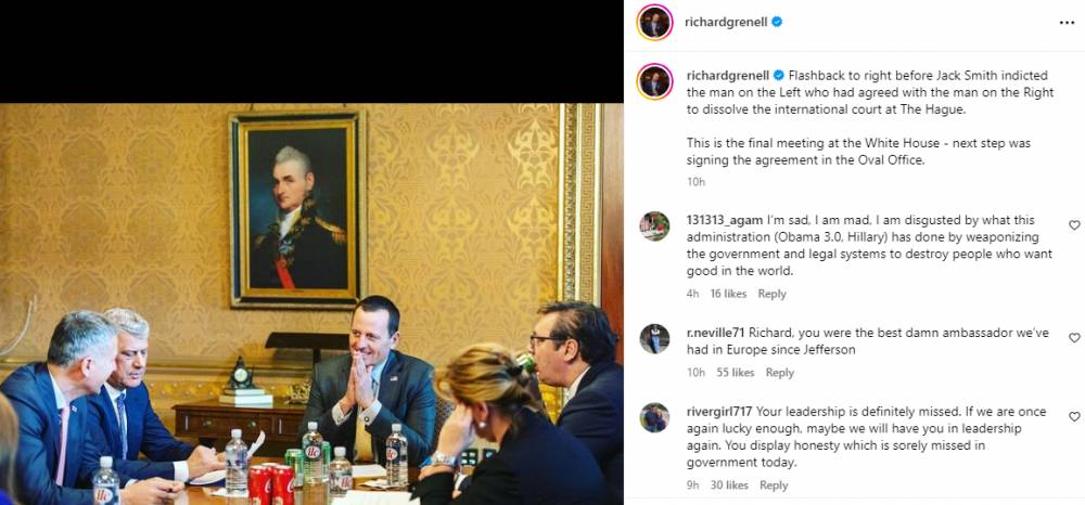 Grenell ka thënë se ky moment është pak para se Jack Smith të ngrinte aktakuzë ndaj Hashim Thaçit i cili kishte rënë dakord bashkë me Aleksander Vuçiqin për zhbërjen e Gjykatës Speciale.