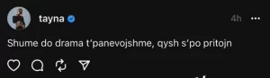 “Shumë drama të panevojshme, si nuk po përtojnë”, ka shkruar Tayna, që duket si postim direkt për dy koleget e saj.