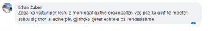 “ Zeqa ka vajtur per lesh, e mori nqaf gjithë organizatën veç pse ka qejf të mbetet ashtu siç thot ai edhe pik, gjithçka tjetër është e pa rëndësishme”, ka shkruar Zuberi.