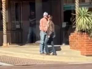 Në një video të postuar nga TMZ, të xhiruar në oborret e famshme të “Fort Worth”, duket qartë supermodelja e kapur për dore, duke u puthur dhe përqafuar me trainerin e kuajve dhe kaubojin Adan Banuelos.