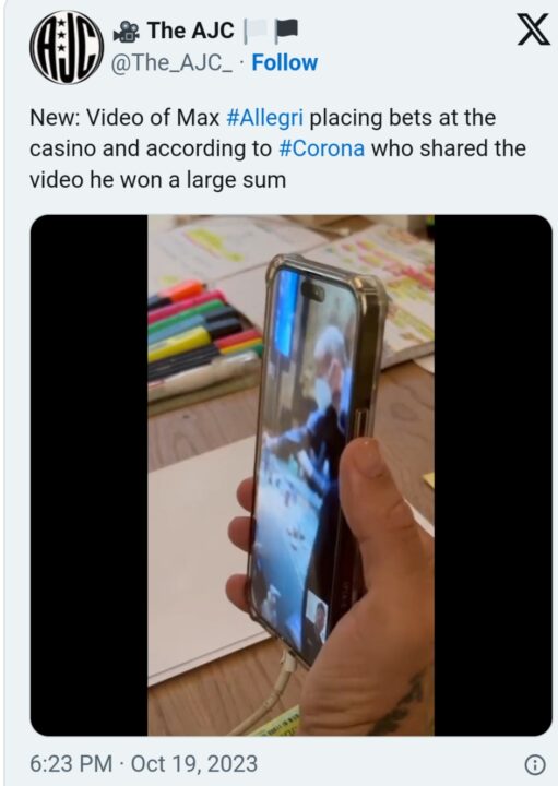 Corona ka publikuar pamje të Allegrit i cili është parë në një kazino në Montecarlo duke vënë bast shuma të mëdha.