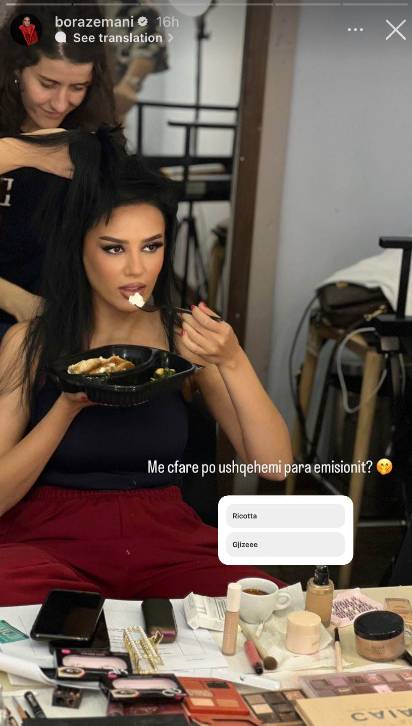 Në fotografinë e fundit ajo shihet duke ngrënë edhe gjatë kohës kur bëhet gati për emision.