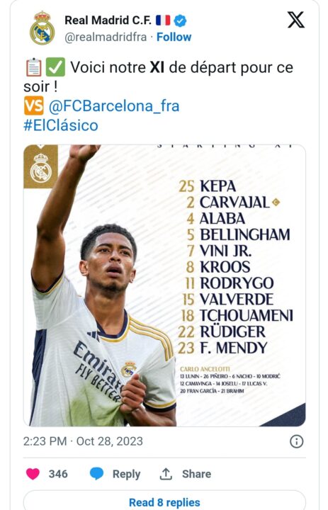 Toni Kroos starton në mesfushë, ndërsa Jude Bellingham natyrisht e mban vendin e tij në formacionin fillestar.