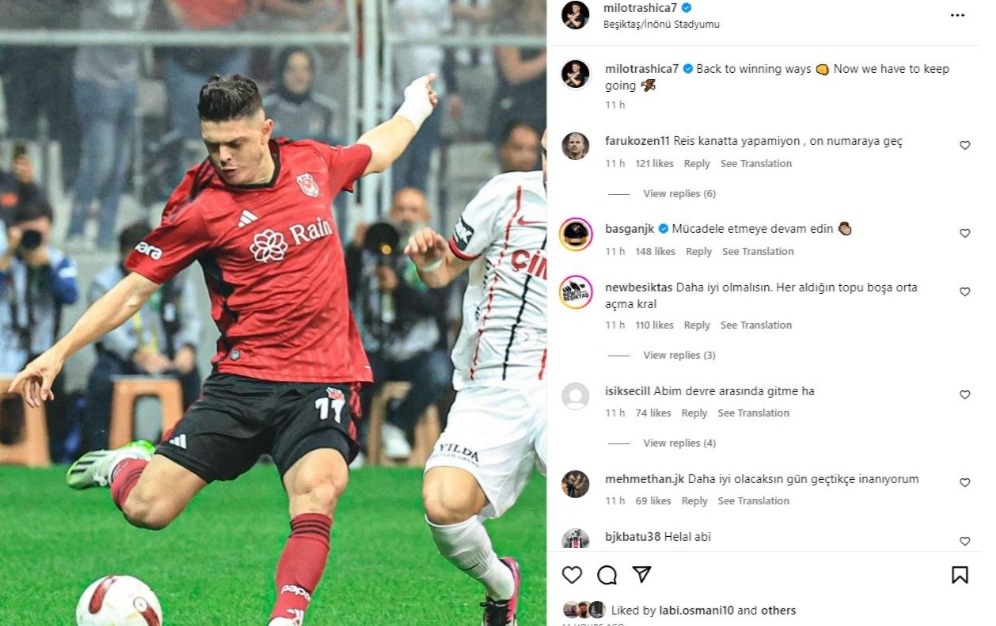 Milot Rashica e ka bërë një postim motivues pas asistimit që e bëri në fitoren e djeshme të Besiktasit me rezultat 2:0 ndaj Gaziantep FK.