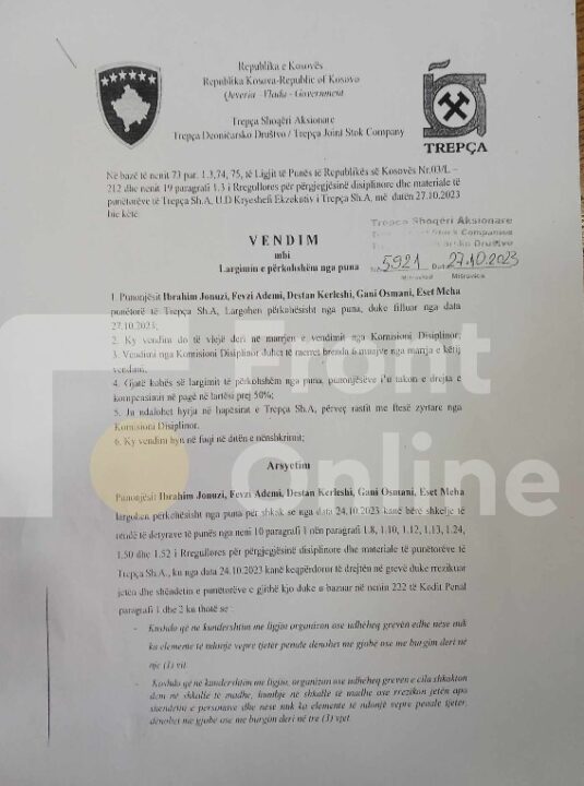 Menaxhmenti i Trepçës ka marrë vendim që t’i suspendojë...