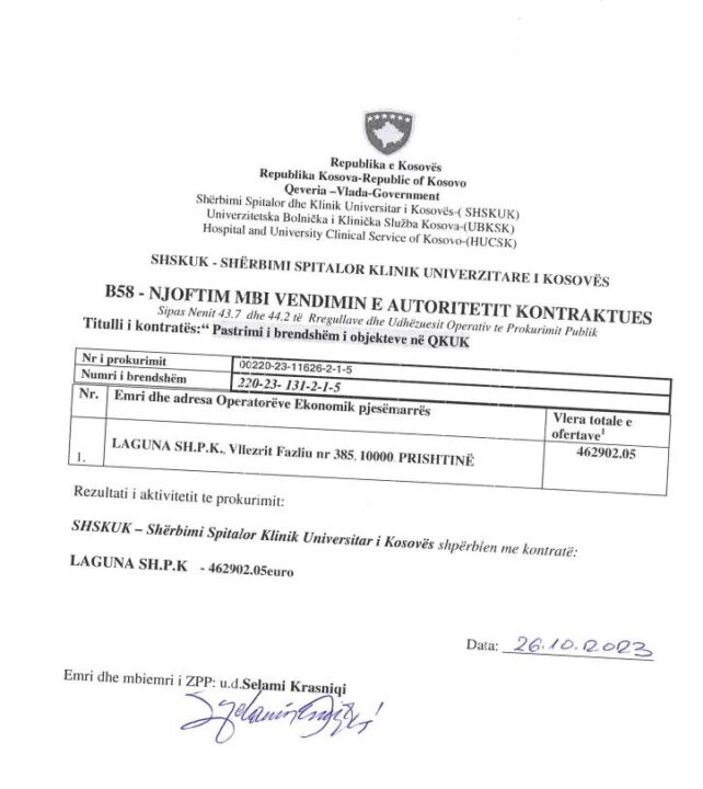 Shërbimi Spitalor Klinik dhe Universitar ka shpërblyer me kontratë...