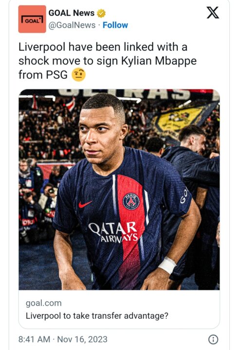 Liverpooli është lidhur në mediat britanike me një lëvizje të papritur për Kylian Mbappe nga Paris Saint-Germain pasi Real Madridi u tërhoq nga gara për transferimin e yllit francez.