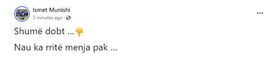 “Shumë dobët. Na u ka rritë mendja pak” – ka shkruar Munishi në Facebook.