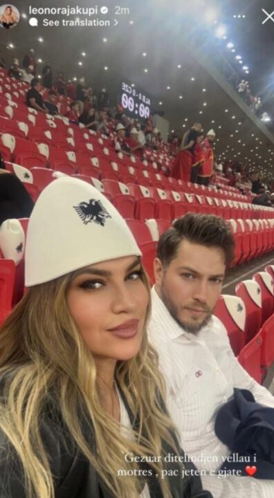 Me rastin e kësaj dite të veçantë, këngëtarja ka postuar një fotografi unike krah tij. Ajo ka të vendosur plisin në stadiumin me plot shqiponja.