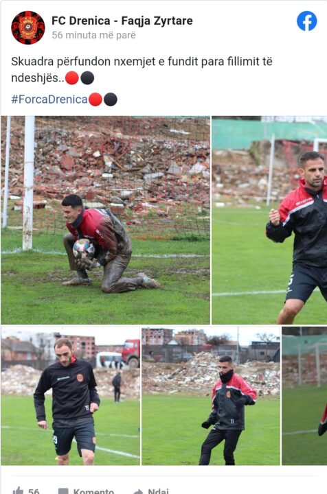 Në fotografitë e publikuara para ndeshjes nga skuadra e Drenicës vërehet lloçi në stadium.