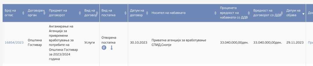 Sipas “Open Finance”, Taravari ka lëshuar 33.040.000 milionë denarë për agjencinë që do të angazhohet për punësime të përkohshme.