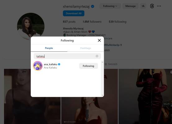 Duket se të njëjtin respekt e gëzon edhe Xhensila për Anna Kallkun, pasi ndryshe nga Besin ajo vazhdon të ndjekë në “Instagram” (ish) kunatën e saj.Prej rreth 3 vitesh, marrëdhënia e Besit dhe Xhensilës, vihet herë pas here në pikpyetje e diskutohet për ndarje.