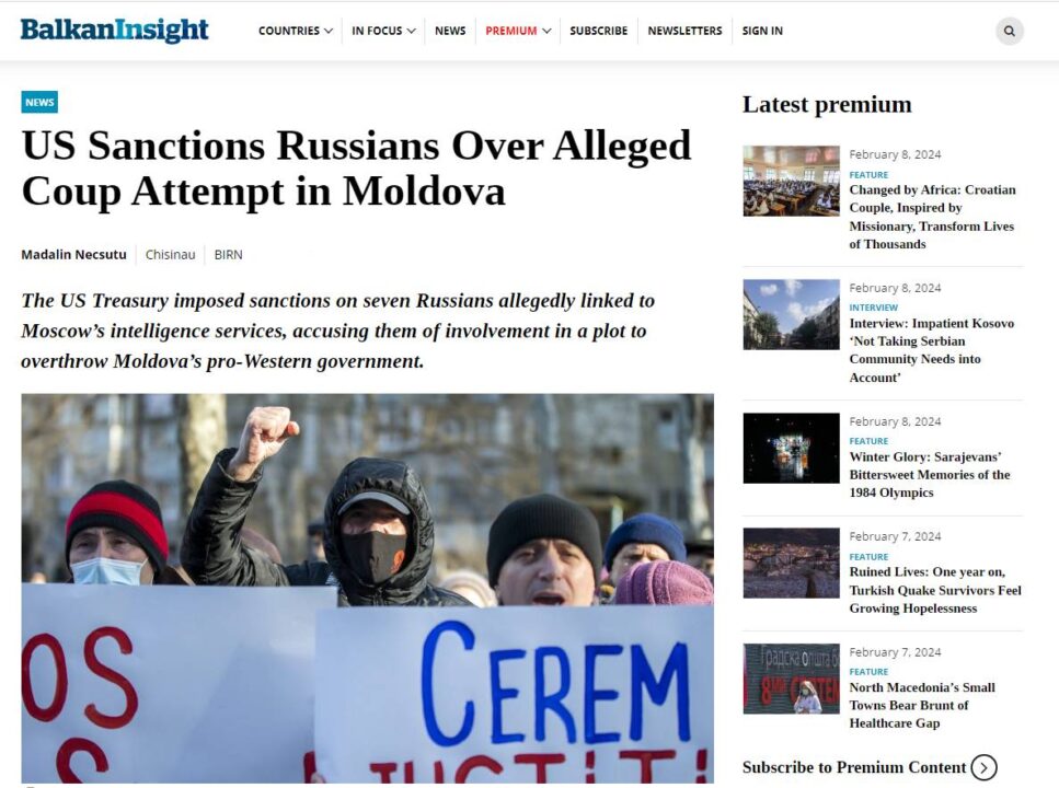 Njerëzit e Putinit po krijojnë struktura të fuqishme për të manipuluar qeverinë dhe qytetarët moldave dhe lidhjet e tyre janë organizata dhe individë të sanksionuar nga Shtetet e Bashkuara, të cilat tregojnë përpjekje për të përfshirë thellësisht Federatën Ruse në punët e brendshme të Moldavisë, shkruan “BalkanInsight”.