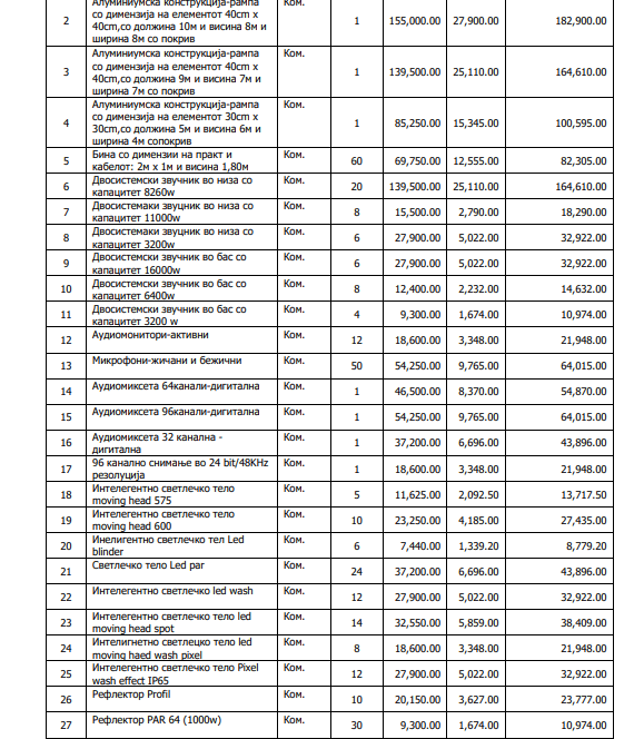 Nëse shohim ofertën, del që këto mjete nga arka e komunës së Tetovës do të jepen për fushatën e cila na pret sepse mjetet janë dhënë që në kthim, Kasami të merr mjete që janë të nevojshme për të zhvilluar një tubim, takim me qytetarët, duke filluar nga pajisjet e zërimit, ndriҫimit e deri tek binat e mbuluara të gjëra 10 metra e të larta 8 metra.