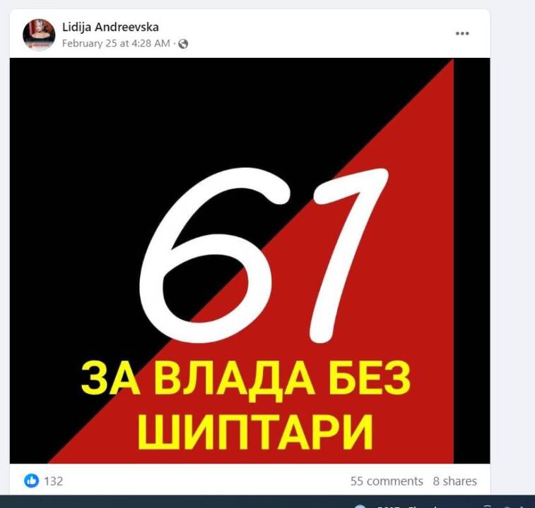Për tre ditë me radhë, Lidija Andreevska në profilin e sajë në “Facebook”, ka mbajtur statusin publik nëpërmes të cilit e njëjta kërkon që maqedonasit t’i japin 61 mandate VMRO-DPMNE-së.