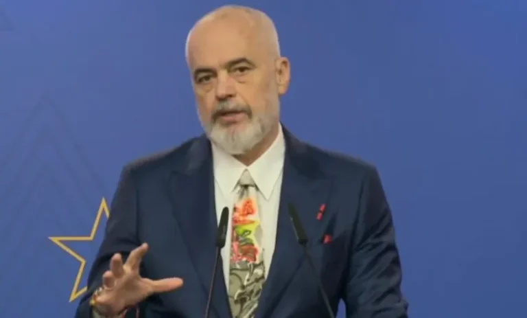 Kryeministri i Shqipërisë, Edi Rama gjatë konferencës së përbashkët...