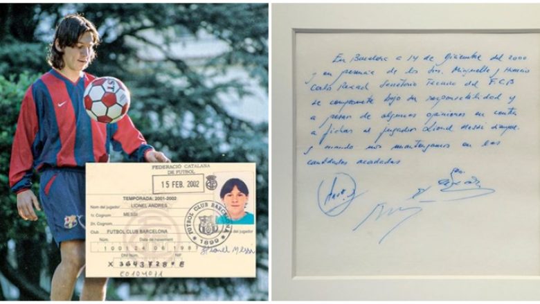 Marrëveshja për pecetën, e shkruar me stilolaps blu: “Në Barcelonë, më 14 dhjetor 2000 dhe prezencën e zotërinjve (Josep) Minguella dhe Horacio (Gaggioli), Carles Rexach, drejtori sportiv i FC Barcelona , pranon, nën përgjegjësinë e tij dhe pavarësisht nga çdo opinion kundërshtues, të nënshkruajë lojtarin Lionel Messi, me kusht që të mbajmë shumat e dakorduara”.