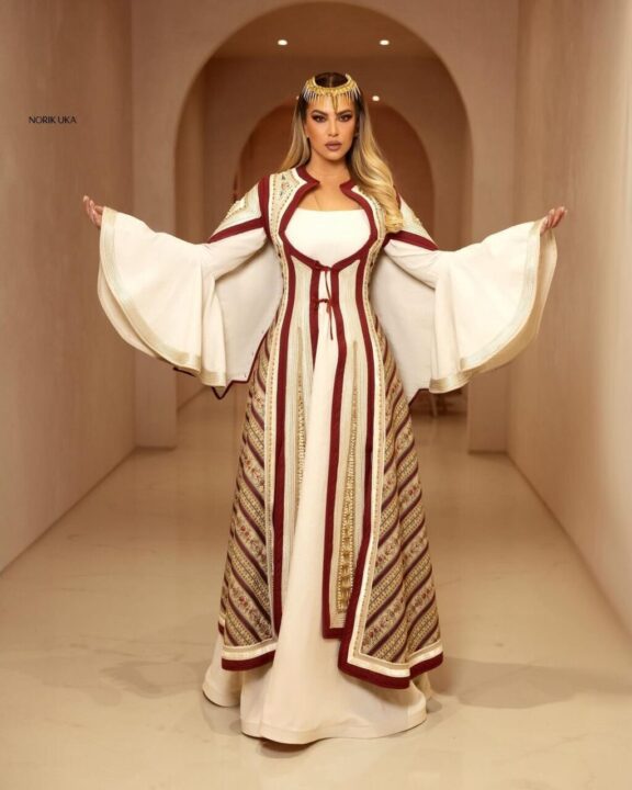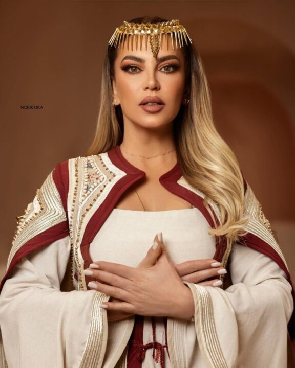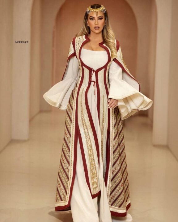 Leonora e veshur me një kostum të gërshetuar me tradicionalen dhe modernen shkëlqeu e tëra.Bukuroshja nga Drenica njihet edhe për këngët patriotike, që i dhanë një jehonë të madhe,shkruan “Kosovarja”.