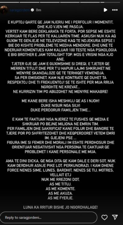 Ish-banorja e Big Brother VIP Albania 3 duket të jetë lodhur nga komentet e akuzat në rrjete sociale.