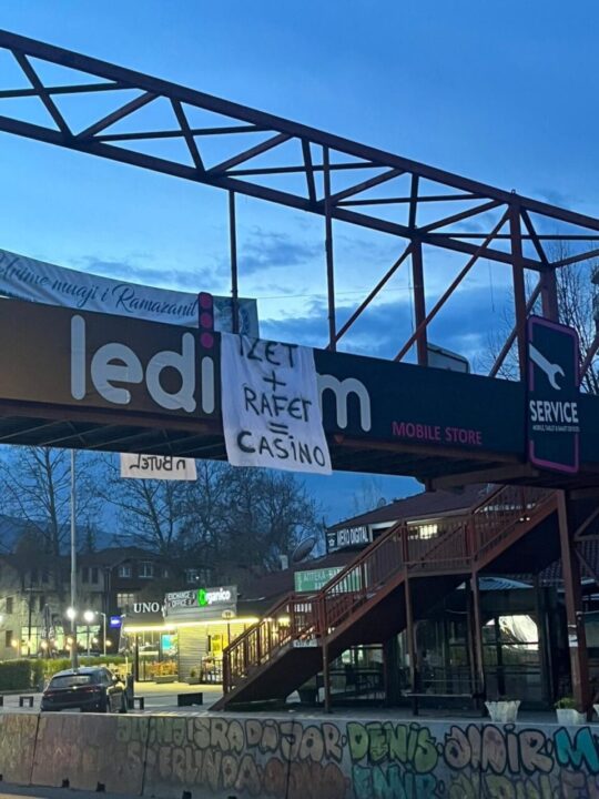Një shkrim i vendosur në urën në lagjen “Jahja Pashë” shkruhet emri i Izet Mexhitit dhe i ish politikanit, Rafet Muminoviç dhe në fund është barazuar me kazino. Kjo për faktin se pikërisht Mexhiti duke mos votuar “PëR” ligjin për lojërat e fatit, i mbrojti dhe i la të “gjalla” objektet e kazinove dhe bastoreve në Çair që kontrollohen nga Muminoviç.