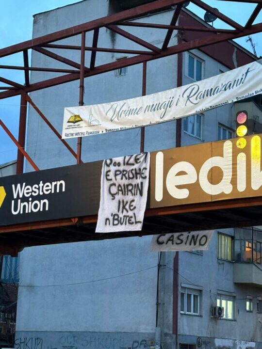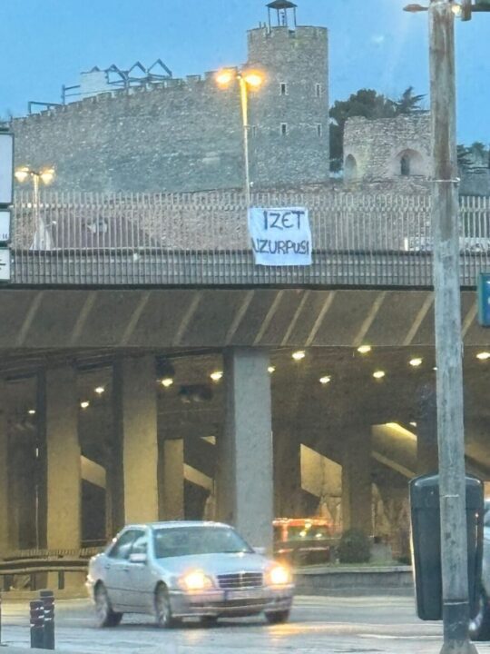 Në një shkrim tjetër të shpërndarë në disa vende është shkruar “Izet uzurpuesi”, që kthen në mendjen e qytetarëve uzurpimin e hapsirave publike dhe ndërtimin e ndërtesave të shumta nga ana e ish kryetarit, Izet Mexhiti.