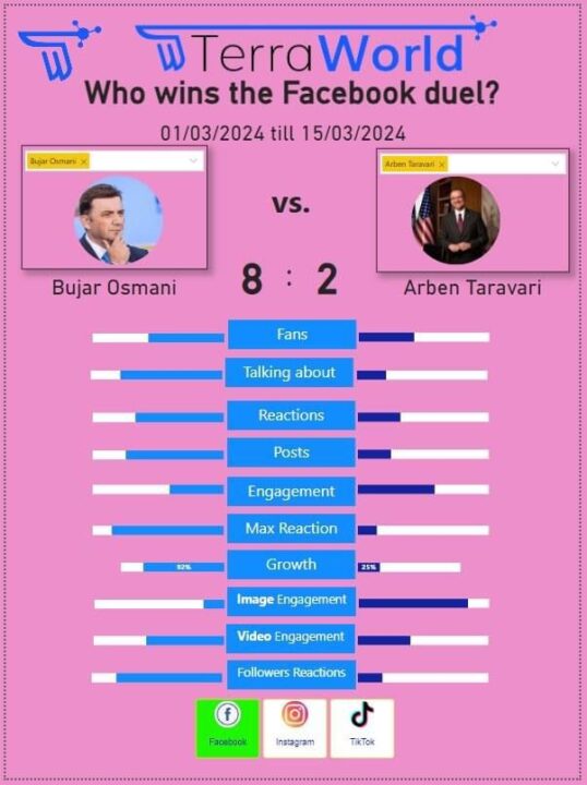 Për dallim nga Taravari, Osmani ka numrin më të madh të fansave, numër më i madh i njerëzve flasin për Osmanin, reagime ka më shumë Osmani se sa Taravari, ka publikuar më shumë video materiale dhe sipas “Terra World”, rrjetet sociale të Osmanit janë në rritje.