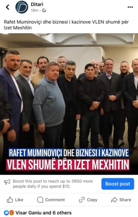 Portali në fjalë është shprehur se Rafet Muminoviqi dhe Biznesi i kazinove vlen shumë për Izet Mexhitin, ndërsa duke shtypur butonin “like” Visari ka konfirmuar këtë interpretim të portalit në fjalë.