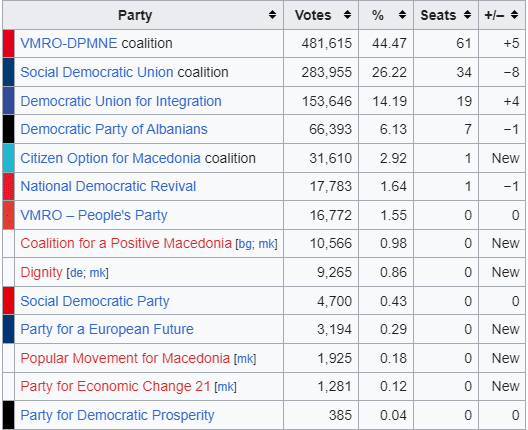 Aso kohe, në vitin 2014, partia fituese në kampin politik Maqedonas ishte VMRO-DPMNE-ja, me 61 deputet, kurse në bllokun shqiptar, BDI-ja ishte e para me 19 dhe PDSH-ja e Thaçit që sot është pjesë e “Frontit Evropian” kishte 7 deputet.