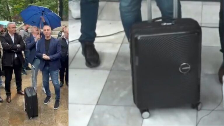 Me valixhe në dorë, zëvendëskryeministri Artan Grubi s’bashku me...