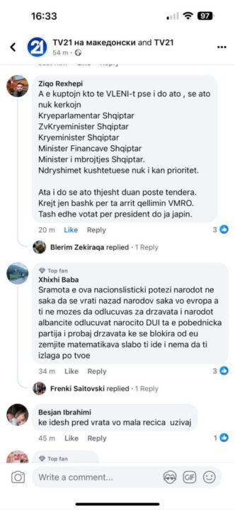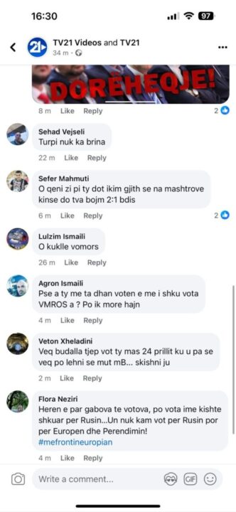 Në në prononcim të fundit të Izet Mexhitit na VLEN në Facebook, komentues të shumtë kanë shkruar “Ju jeni tradhëtarë, të shitur, VLEN lyp vota për VMRO-në, a ende keni fytyrë me dal me fol paterica të VMRO-së…” etj.