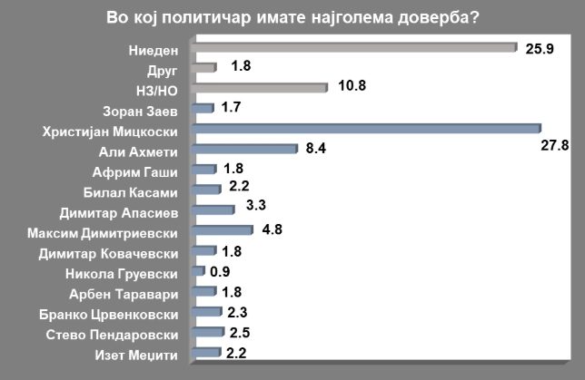 Duke u bazuar në këtë matje kreu i integristëve, Ali Ahmeti gëzon 8.4% të mbështetjes së qytetarëve dhe asnjë nga liderët tjerë shqiptarë nuk gëzon këtë mbështetje.