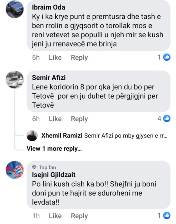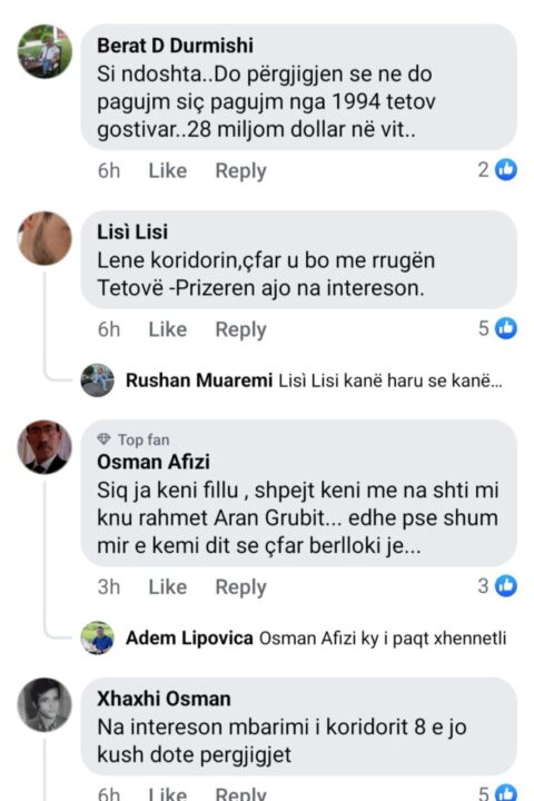 “Lene koridorin,çfar u bo me rrugën Tetovë -Prizeren ajo na intereson”, ka shkruar një tjetër komentues.