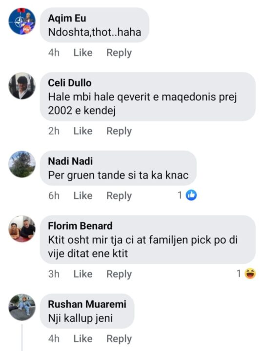 “Siq ja keni fillu , shpejt keni me na shti mi knu rahmet Aran Grubit… edhe pse shum mir e kemi dit se çfar berlloki je…”, ka shkruar një tjetër komentues.