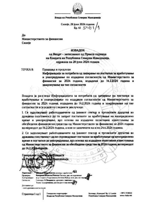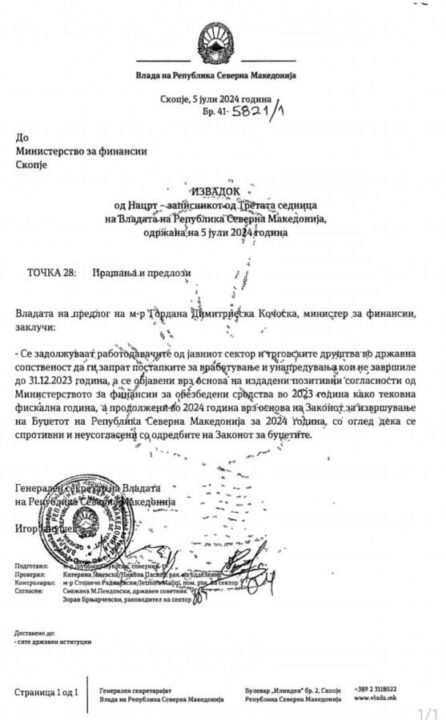 Sidoqoftë këto dy dokumente flasin për dy vendime Qeverie që sollën këtë kaos: me 28 qershor dhe 5 korrik, një për stopim të të gjitha konkurseve në nivel shteti dhe një për rimarrje pëlqimi nga Ministria e Financave për hapje të konkurseve për çfarë derimë sot ska asnjë lëvizje pavarësisht përpjekjeve të përditshme të institucionit tash dy muaj!