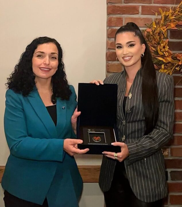 Mbrëmë presidentja e Kosovës e cila ka disa ditë që gjendet në New York, e ka nderuar artisten me medalje.