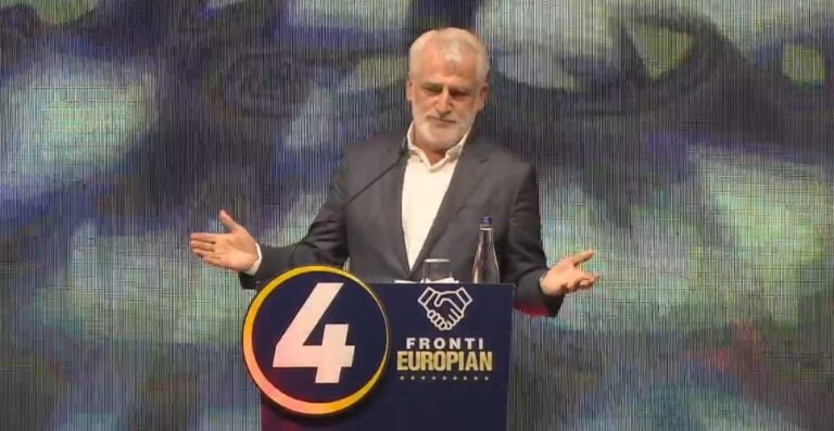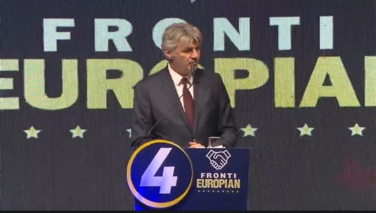 Bujar Osmani, nga Fronti Europian, gjatë një deklarate në...